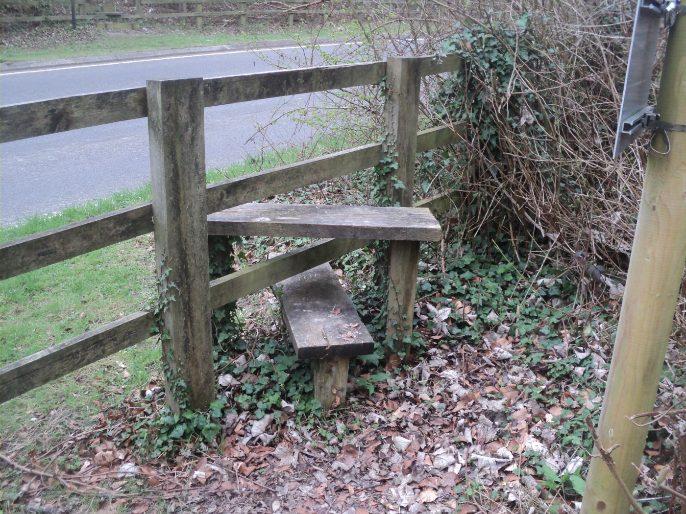 This stile certainly looks the part, with a consistent finish with the materials used and employing the rightfully popular cross-step design that is at a decent height in relation to the bars in the fence. It also nicely blends into the scenery, with the ivy adding a rustic look.